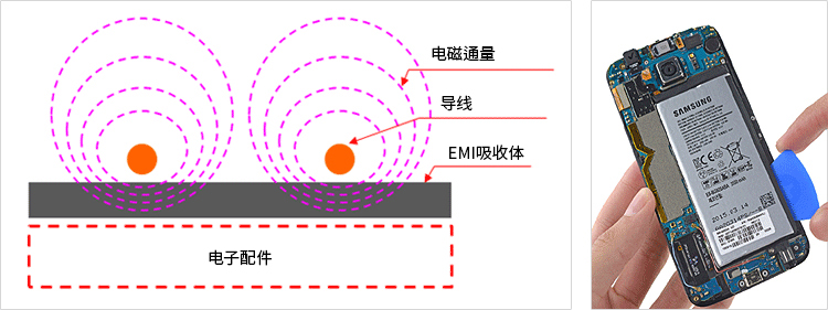 EMP®系列是依据EMI胶布设计和开发并应用于EMI胶布上吸收体产品。EMI吸收体因其高磁吸收率而被用于电子设备以抑制EMI噪声。还可用于改善智能手机的信号电感和无线充电系统。由于EMP®系列由软磁性粉末和特殊聚合物组成,因此具有良好的渗透性、柔韧性和稳定性。EMI吸收器可用于混合类型,如导电铝箔或铜箔层压材料和表面黑色处理。EMI吸收体还可应用于数字化仪、NFC、WPC模块和EMI噪声源等电子领域,如FPCB、半导体、WLAN和军用、医疗设备和卫星的高频带噪声吸收。