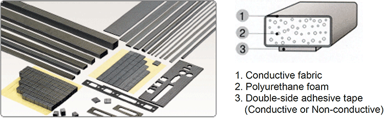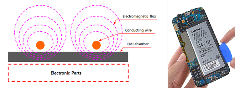 EMP® Series means that EMI TAPE’s EMI absorbers products which has been designed and developed by EMI TAPE. EMI absorbers are used at electronic equipment for EMI noise suppressing by its high magnetic loss. Also it could be used for improvement of signal inductance and wireless power charging system of smart phones. Because EMP® Series is composed of soft magnetic powders and special polymers, it has good properties like as permeability, flexibility and stability. EMI absorbers could available for hybrid types like as conductive aluminum or copper foil laminating materials and black treatment of the surfaces. Also EMI absorbers could be applied in electronic fields of digitizer, NFC, WPC modules and EMI noise source such as FPCB, semiconductors, WLAN and high frequency band noise absorbing for military, medical equipment and satellites.